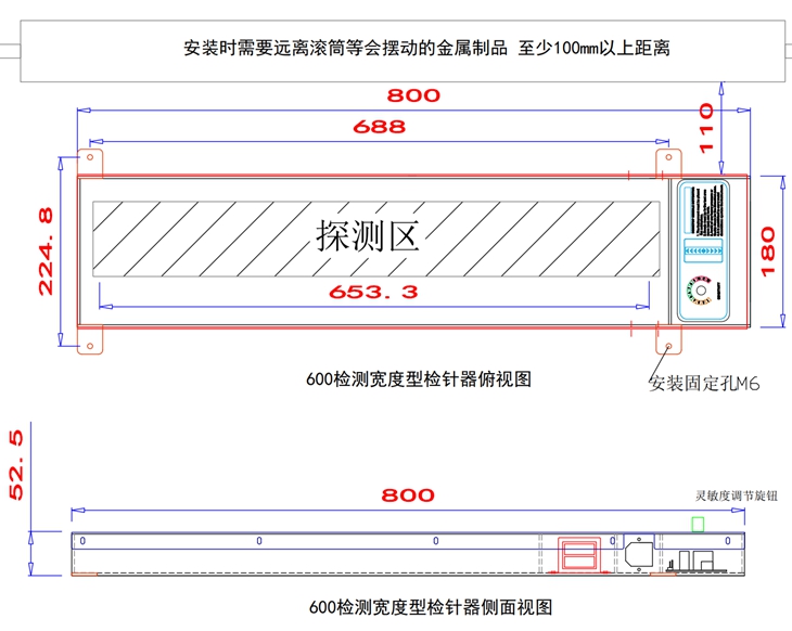 外形尺寸: 800×180×5mm(长×宽×高);探测区:650×10mm(长×宽)